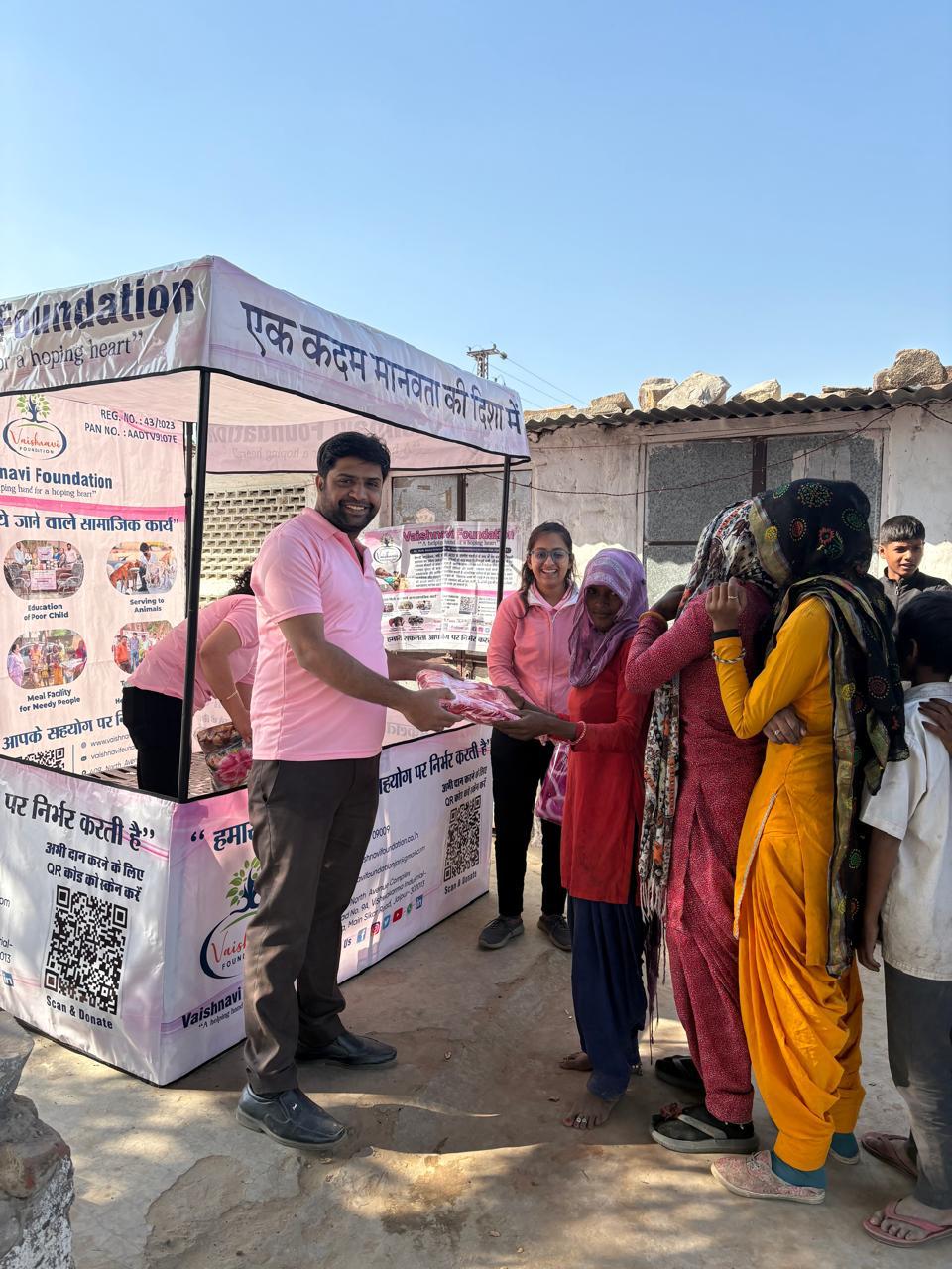 हमें बेहद खुशी है कि भगवान की कृपा और आपके समर्थन से, वैष्णवी फाउंडेशन ने 26/09/2023, मंगलवार को एक अभियान चलाया, जहां हमने जयपुर और इसके आसपास के क्षेत्र में घर-घर जाकर पैकेट के रूप में भोजन वितरित किया।